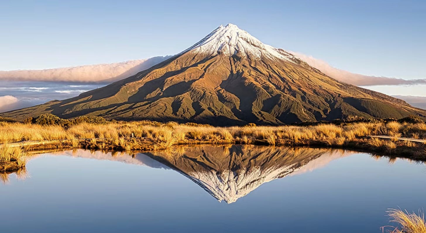 Maata arrived at this exhibit, her last in a long career of teaching and mounting her weaving masterpieces, in all her magnificence. The photo of her on the cover of The Spirit of Manaaki was taken at the exhibit. The art behind her, depicting her beloved Taranaki Maunga (Mt. Taranaki), is her own. Maata lived at the feet of Taranaki Maunga, and she paid homage to him every day.